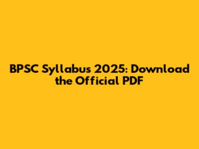 BPSC Syllabus 2025: Download The Official PDF