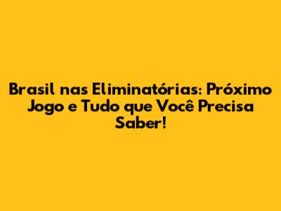 As Eliminatórias para a Copa do Mundo são uma jornada emocionante para os torcedores brasileiros. Acompanhar cada jogo, vibrar com cada vitória e torcer pelo sucesso da Seleção é uma experiência única. Este artigo foi criado para fornecer todas as informações necessárias sobre o próximo jogo do Brasil, o calendário, onde assistir, as expectativas, a história e as fontes de informação. Prepare-se para torcer, vibrar e celebrar cada gol, cada vitória e cada passo rumo à Copa do Mundo!
