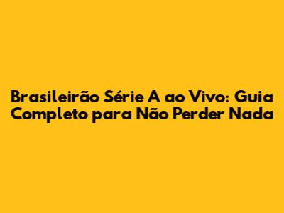 Brasileirão Série A Ao Vivo: Guia Completo Para Não Perder Nada