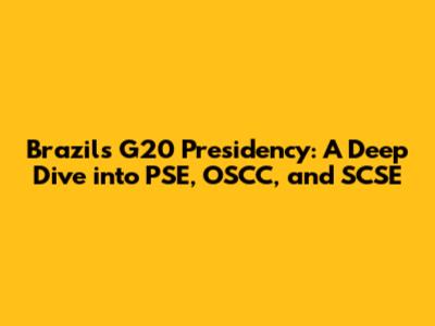 Brazil's G20 Presidency: Focus On PSE, OSCC & SCSE