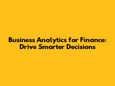 Business Analytics For Finance: Drive Smarter Decisions