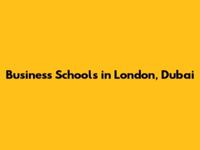 Business Schools In London, Dubai