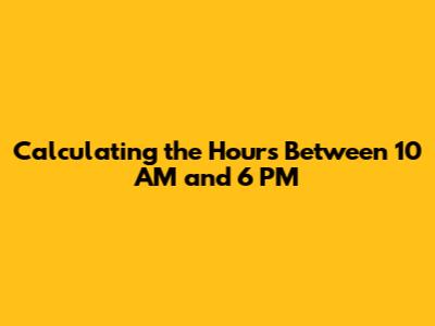 The easiest way to calculate the hours between 10 AM and 6 PM is to simply count them. Start at 10 AM and count each hour until you reach 6 PM: