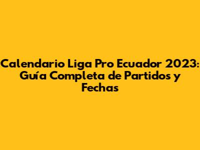 Calendario Liga Pro Ecuador 2023: Partidos, Fechas Y Todo Lo Que Necesitas