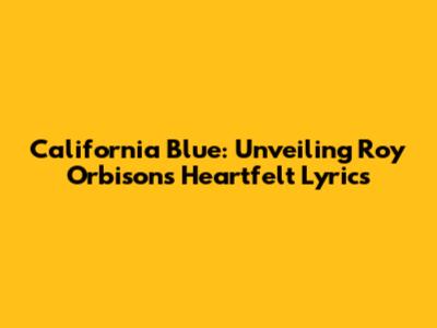 Okay, let’s get down to business and break down the lyrics of "California Blue." This is where we really start to understand the depth of the song. The lyrics themselves tell a story of lost love and lingering memories. Each verse paints a picture of someone grappling with heartbreak, using vivid imagery and heartfelt emotions to convey the pain of separation. Orbison’s masterful use of language allows listeners to connect with the song on a deeply personal level, making it more than just a tune – it’s an experience. So, let’s dive in and uncover the layers of meaning within each verse, exploring the themes of longing, regret, and the enduring power of love. Here's a closer look: