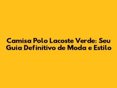 Camisa Polo Lacoste Verde: Guia Completo E Dicas De Estilo