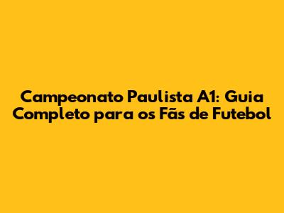 Campeonato Paulista A1: Guia Completo Para Os Fãs De Futebol