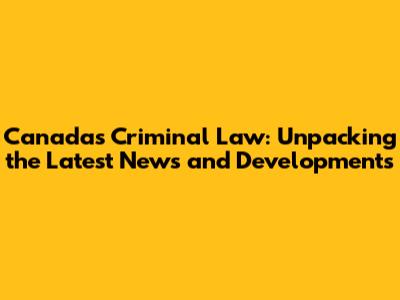 Canada's Criminal Law: Breaking News And Insights