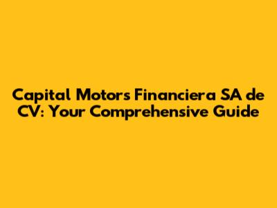 Hey guys! Ever heard of Capital Motors Financiera SA de CV? If you're into the world of auto financing, it's a name you might want to know. This guide is all about diving deep into what Capital Motors Financiera SA de CV is, what they do, and how they operate. We'll break down the ins and outs, so you can get a solid understanding of this financial player. Let's get started, shall we?