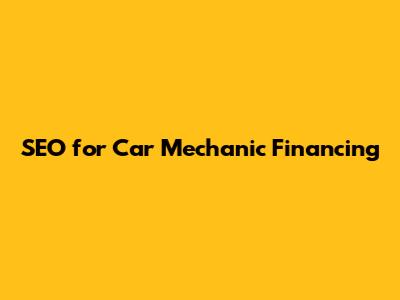 Car Mechanic Financing: SEO Strategies