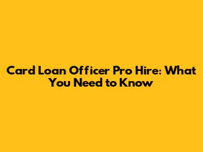 Card Loan Officer Pro Hire: What You Need To Know