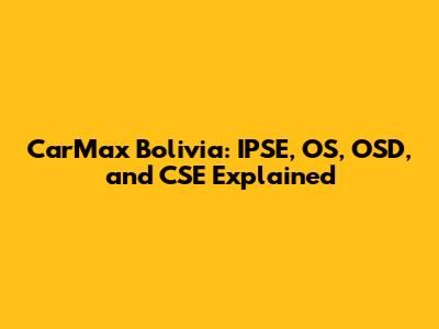 CarMax Bolivia: IPSE, OS, OSD, And CSE Explained