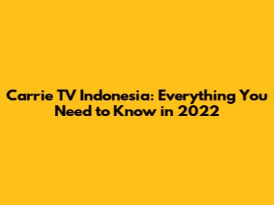 Carrie TV Indonesia: Recap & Latest Updates (2022)