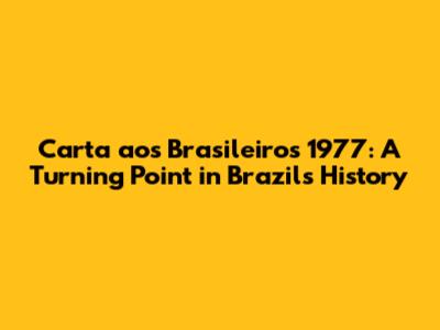 Carta Aos Brasileiros 1977: A Turning Point In Brazil's History