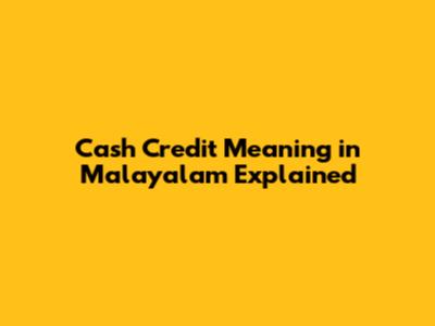 Cash Credit Meaning In Malayalam Explained