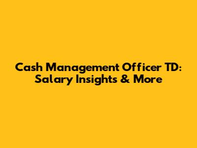 Cash Management Officer TD: Salary Insights & More