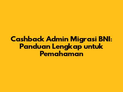 Cashback Admin Migrasi BNI: Panduan Lengkap Untuk Pemahaman