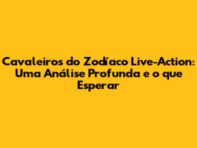 Cavaleiros Do Zodíaco Live-Action: Análise Completa E Expectativas