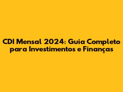 CDI Mensal 2024: Guia Completo Para Investimentos E Finanças