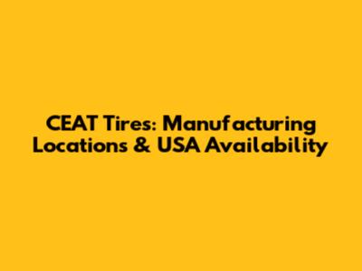 CEAT Tires: Manufacturing Locations & USA Availability