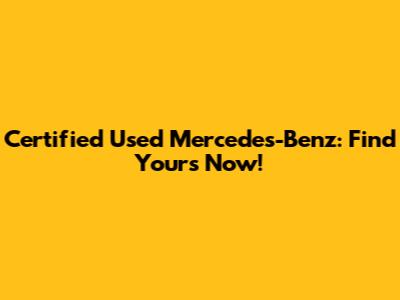 Certified Used Mercedes-Benz: Find Yours Now!