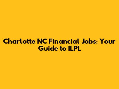 Hey there, future finance gurus! Are you on the hunt for financial jobs in Charlotte, NC? You've come to the right place! Charlotte's booming financial scene is a treasure trove of opportunities, and ILPL (let's assume this is the name of a specific company or a common acronym for a relevant entity – maybe a staffing agency or a local financial institution; I will assume it is a financial institution for this article) could be your golden ticket. This article is your ultimate guide to navigating the Charlotte financial job market, with a special focus on how ILPL might be your key to unlocking your dream career. We'll dive into the types of roles available, what employers look for, and how to position yourself for success. Get ready to level up your job search game!