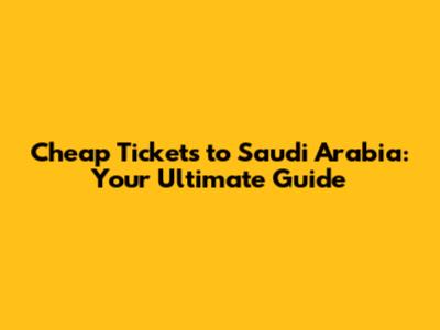 Cheap Tickets To Saudi Arabia: Your Ultimate Guide