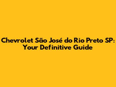 Chevrolet Sao Jose Do Rio Preto SP: Your Ultimate Guide