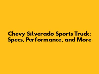 Chevy Silverado Sports Truck: Specs, Performance, And More