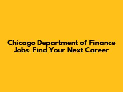 Chicago Department Of Finance Jobs: Find Your Next Career