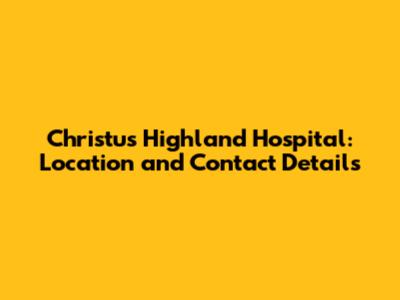 Christus Highland Hospital: Location And Contact Details