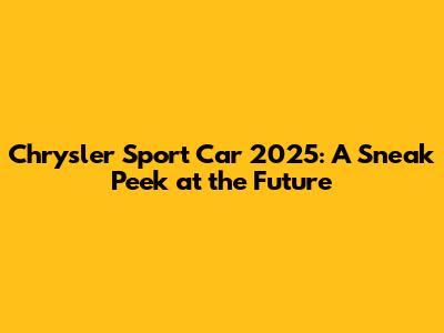 Chrysler Sport Car 2025: A Sneak Peek At The Future