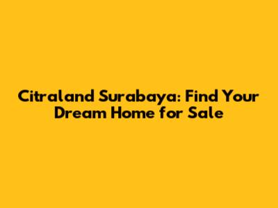 Citraland Surabaya: Find Your Dream Home For Sale