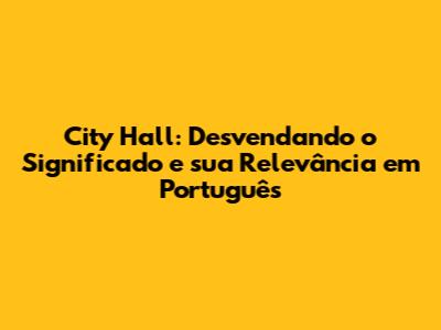 City Hall: O Que Significa E Sua Importância