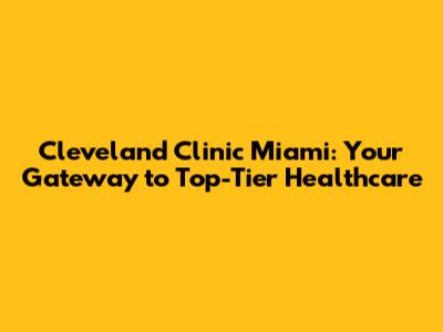 Cleveland Clinic Miami: Your Guide To Exceptional Healthcare