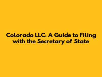 Colorado LLC: Guide To Filing With The Secretary Of State