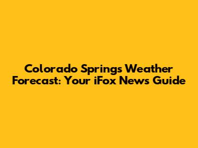 Colorado Springs Weather Forecast: Your IFox News Guide