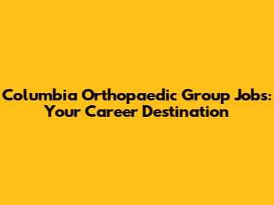 Columbia Orthopaedic Group Careers: Find Your Dream Job
