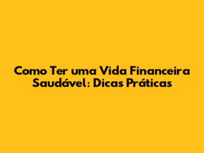 Como Ter Uma Vida Financeira Saudável: Dicas Práticas