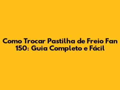 Como Trocar Pastilha De Freio Fan 150: Guia Completo E Fácil