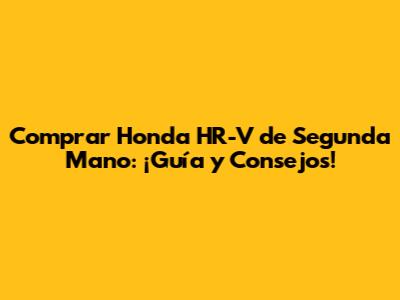 Comprar Honda HR-V De Segunda Mano: ¡Guía Y Consejos!
