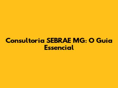 Consultoria SEBRAE MG: O Guia Essencial