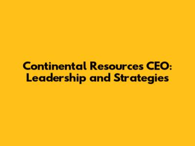 Continental Resources CEO: Leadership And Strategies