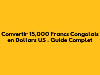 Convertir 15,000 Francs Congolais En Dollars US : Guide Complet