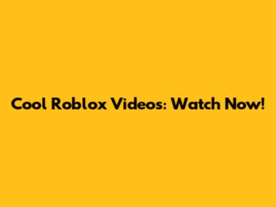 Cool Roblox Videos: Watch Now!