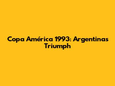 Copa América 1993: Argentina's Triumph
