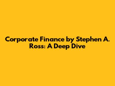 Hey guys! Today, we're diving deep into corporate finance using the legendary textbook by Stephen A. Ross. This book is a cornerstone for understanding the principles and practices that drive financial decisions in companies. Whether you're a student, a finance professional, or just someone curious about how businesses manage their money, Ross's book is an invaluable resource. Let’s break down why this book is so influential and what key concepts you can expect to learn from it.