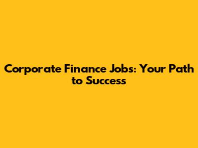 Corporate Finance Jobs: Your Path To Success