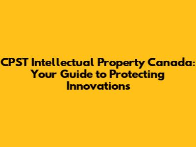 CPST Intellectual Property: Protecting Your Ideas In Canada
