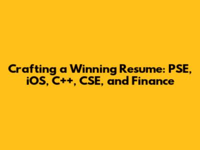 Crafting A Winning Resume: PSE, IOS, C++, CSE, And Finance